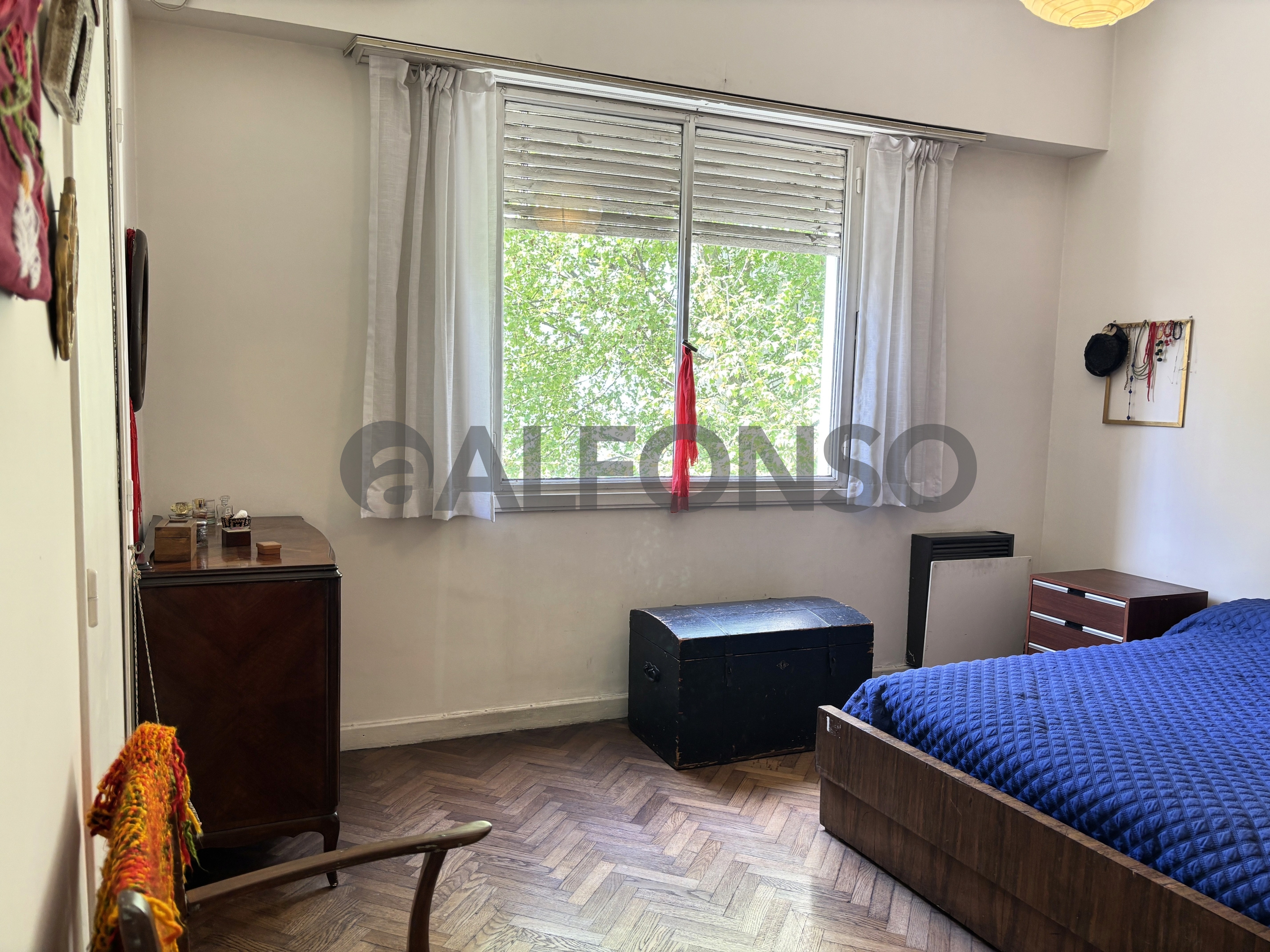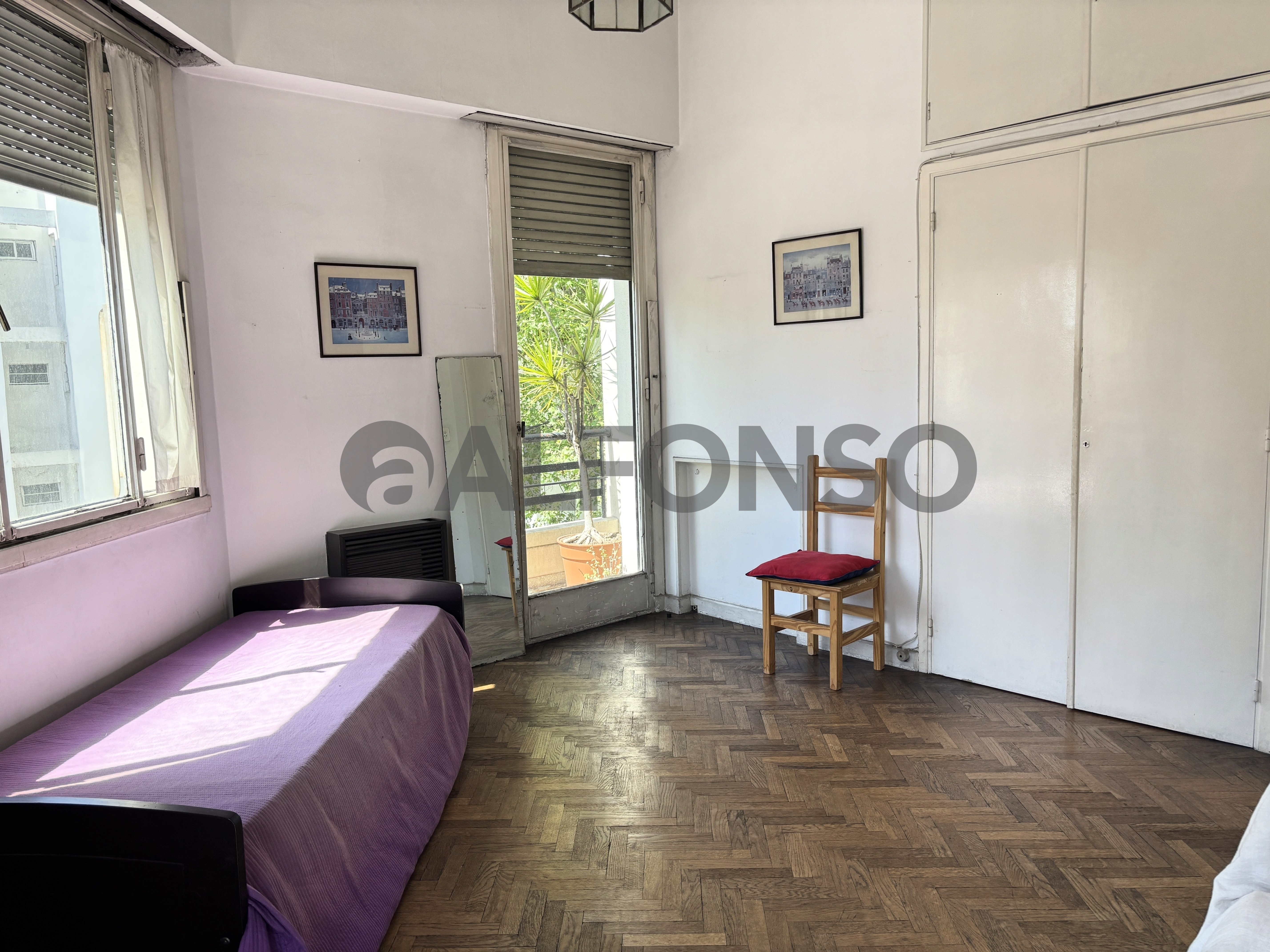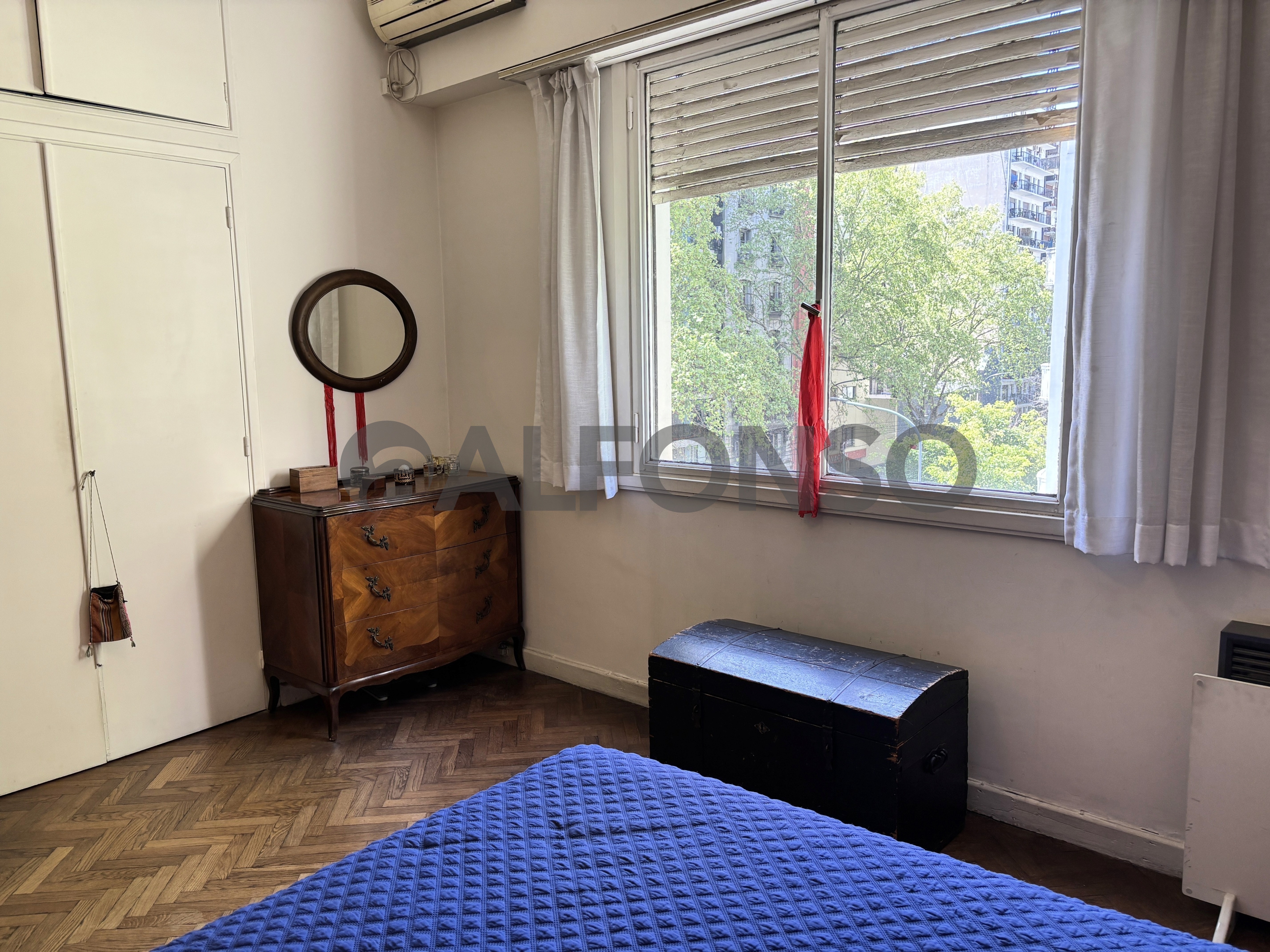 • Dormitorio principal con placard, aire acondicionado y ventana a la calle.